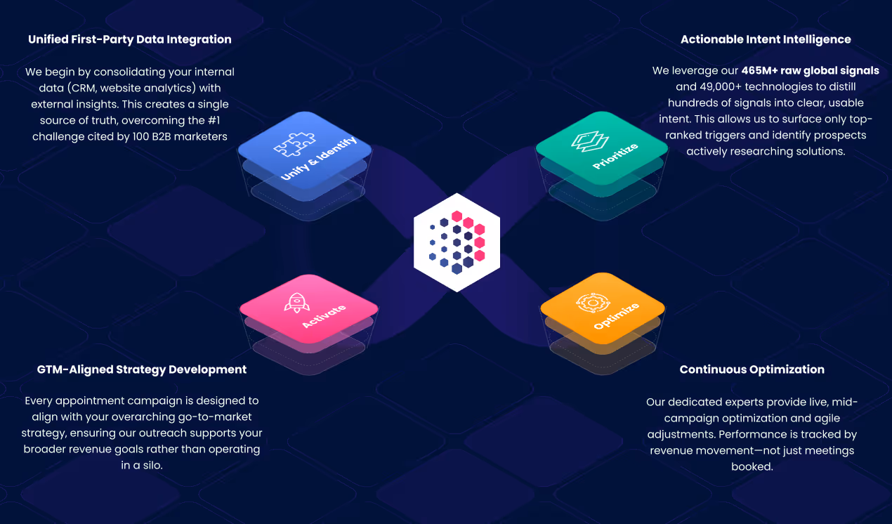 We Unify first-party data, intent signals, and sales feedback into a single, actionable stream, overcoming the #1 challenge cited by B2B marketers