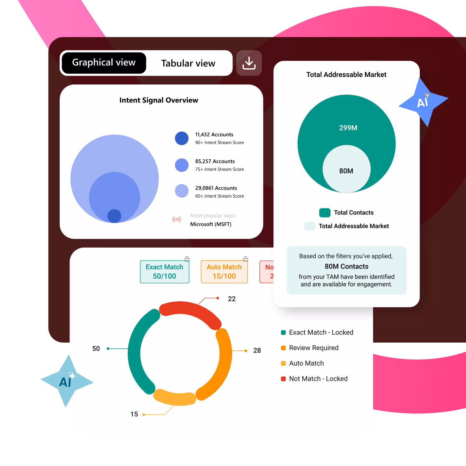The Revenue Signal Mixer unifies every revenue signal—first-party intent, firmographics, 40K+ install-base tech insights, and full buying committee activity—into one actionable intelligence layer. No more guesswork. Just a clear, prioritized path to the accounts most likely to convert.